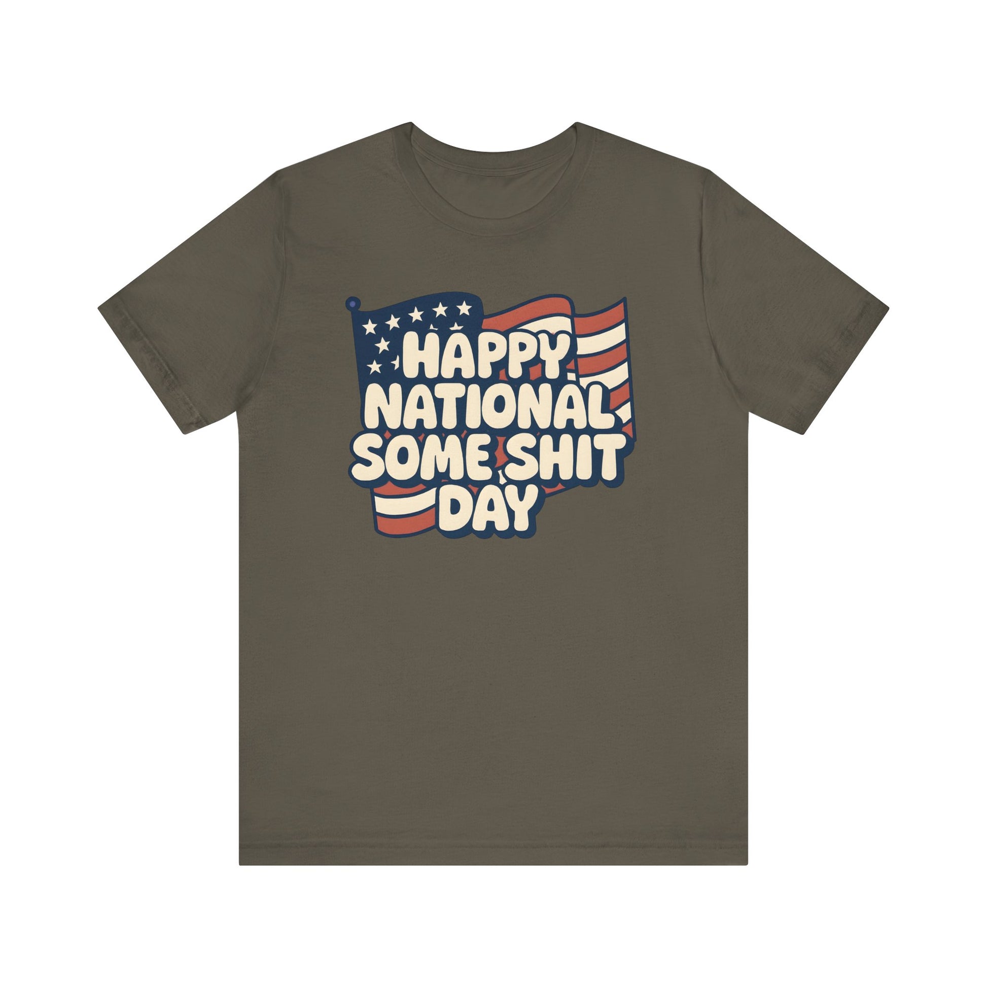 A funny sarcastic t-shirt perfect for those who love celebrating National Holidays. This shirt is great for those who enjoy a bit of humor and don't mind a touch of foul language. It's a casual and comfortable piece that can be worn for leisure or everyday occasions.